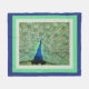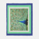 Pavão com penas verdes e azuis. Corpo azul brilhante. Três bordas coloridas de bege, verde e azul.