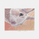 O fechamento de um coelho pintado com guache apresenta detalhes intrincados do pelo macio e expressivos olhos escuros, capturando a curiosa e serena expressão do animal.