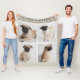 Este cobertor personalizado aconchegante dá um dom perfeito para o amante do cachorro na sua vida! Personalize com o nome ou nomes do(s) seu(s) animal(es) favorito(s) e carregue quatro de suas fotos favoritas na colagem de fotos. A citação "Uma casa não é uma casa sem estampas de pata" pode ser modificada. Apresenta cores preto e bege neutro.