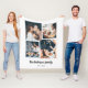 Este cobertor simples, mas ultra moderno, apresenta quatro das suas fotografias pessoais favoritas numa grelha de fotografias de aparência única e em camadas. O design preto e branco apresenta seu nome familiar em uma elegante tipografia manuscrita de tendências, e tem um lugar para o ano estabelecido em uma fonte coordenadora sans serif.