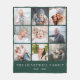 Este cobertor de folheto de manutenção apresenta uma colagem de nove das suas fotos de família quadradas favoritas em um fundo verde esmeralda Adicione o nome e a data de estabelecimento da sua família ou outro texto na parte inferior em fontes brancas serif.