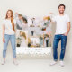 Foto Floral Collage Fleece Blanket. Este cobertor de casamento de na moda apresenta uma colagem de 7 fotos de casamento (4 verticais e 3 quadrados), o nome da noiva e do noivo e a data do casamento. O trabalho de arte é um quadro de lindas flores silvestres em aquarela pintada manualmente em cores de azul empoeirado, primavera amarelo e verde-sábio.