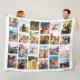 Crie seu próprio cobertor personalizado de colagem de fotos. Adicione 24 das suas imagens favoritas e fundo de cores personalizado neste design modelo moderno.