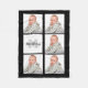 Cobertor de Fleece com Colagem de Fotos Personalizadas e Monograma. Adicione facilmente suas 5 fotos quadradas personalizadas a este modelo de lembrança, cobertor de fleece horizontal e vertical com uma borda preta elegante. As fotos podem ser uma mistura de fotos memoráveis da família, dos filhos e de outros membros da família. Coloque uma inicial monograma de uma única letra e o último ou primeiro nome. Crie seu próprio símbolo memorável da sua família, filhos, dia do casamento, aniversário, Natal ou outra ocasião especial. Fotos de alta qualidade em cores vivas com fundo de cor sólida. Preserve suas memórias queridas com estilo. O design está disponível em três tamanhos de cobertores de fleece. Escolha o seu tamanho no menu à direita antes de fazer o pedido.