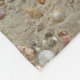 Vários grupos de conchas marinhas estão espalhados na areia da praia, nesse padrão de praia náutica feito a partir de várias fotos. Aproveite a praia o ano todo com esta design de praia inspirada na praia.