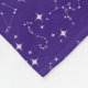 Este cobertor apresenta estrelas e constelações sobre um fundo roxo escuro.