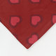 Este cobertor de velo apresenta um padrão repetitivo de corações vermelhos de dois tons em um fundo de criminoso.