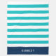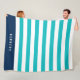 cobertor de estilo náutico com um padrão de listras brancas com uma cor de fundo editável, clique no botão personalizar para acessar. Para alterar a cor da turquesa, selecione a cor de fundo e altere a cor. Para alterar a cor azul, selecione a camada de retângulo e altere sua cor de preenchimento. Personalize-o substituindo o texto do marcador de posição pelo seu próprio texto. Para obter mais opções, como alterar a fonte e seu tamanho/cor ou o espaçamento entre letras, clique no botão "Personalizar". *Observe que a Marca d'água do Zazzle que aparece na visualização de zoom NÃO aparecerá no produto impresso final. © Rosewood e Citrus