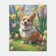 Cobertor De Velo Corgi Dog Spring Flowers Painting