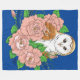 Cobertor De Velo Coruja-Celeiro Azul Flores Rosa