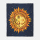 This striking sun-and-moon boho goddess artwork features a radiant golden winking face surrounded by fiery mandala rays. Symbolizing balance, intuition, and feminine strength, this piece represents harmony between day and night, mind and spirit. This soft and cozy night sky throw blanket is perfect for anyone drawn to celestial symbolism and unique spiritual art. | The matching throw pillow is available in my store.