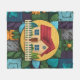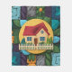 Um padrão de ícone caseiro cativante com uma casa encantadora com um telhado vermelho e cerca de piquete branca. A casa é aninhada em meio a uma atmosfera acolhedora e convidativa, cercada por uma variedade de texturas e cores. O padrão inclui um cobertor de velo, adicionando ao senso geral de calor e conforto