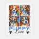 Este é um cobertor bonito perfeito para um amante de cachorro que apresenta 4 adoráveis cachorros estilizados em cores vibrantes com as palavras "Amor Cachorro" e patas de cachorro.