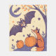 Featuring smiling bats, mysterious foxes with glowing eyes, pumpkins, and a starry night sky, this design perfectly blends spooky charm with warm comfort.