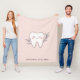 This light pink fleece blanket features a cute botanical tooth illustration and is personalized with your dental office name in a clean, sans serif font.