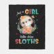 Cute just girl loves sloths word art Fleece Blanket