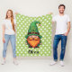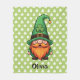 This cute St. Patrick's Day Gnome blanket features a friendly gnome sporting a tall, vibrant green leprechaun hat adorned with a clover shamrock and a classic gold buckleagainst a green background with clovers.