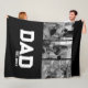 The clean black and white photo style gives the design a timeless, modern look while keeping the focus on the memories that matter most. The bold “Dad” typography paired with meaningful family photos transforms this blanket into both a cozy comfort item and a sentimental display piece. Whether draped over a couch, layered on a bed, or wrapped around dad while relaxing, it becomes a daily reminder of the people who made him “Dad.”