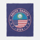 Crachá de Dakota do Sul com bandeira de Dakota do Sul e bandeira de cores dos EUA, forma arredondada. Emblema de Dakota do Sul. Selo de Dakota do Sul. Coleção dos Estados Unidos.