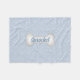 Esta é a pequena versão do nosso cobertor personalizado azul damasco para cães com um osso que tem o nome do filhote para um toque clássico.