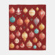 Xadrez de velo fresco, macia e em tons quentes, colocada em uma poltrona ou sofá com várias decorações de Natal, principalmente bolas de Natal de diferentes tamanhos e cores.