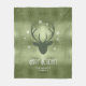 Este cobertor de velo apresenta silhueta de veados e flocos de neve em verde-escuro sobre um fundo verde-texturizado. Foi fornecido um texto "Feriados Felizes" opcional e um modelo para adicionar seu nome e/ou outro texto. Procure ID861 a ID864 para ver opções de cores adicionais e outros produtos neste conjunto de design de Natal moderno.