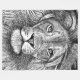 Um design de desenho de leão desenhado por uma técnica digital de quadro de riscos que dá uma gravação com efeito semelhante. Nessa escala, as qualidades abstrato do desenho serão evidentes quando visto de perto, mas se misturam para mostrar uma imagem de leão quando visto de longe.