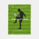 O Design de futebol Fleece Blanket com as silhuetas de um jogador contra um fundo de futebol com personalização personalizável.