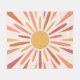 Ilustração de sol do estilo abstrato retro com decoração de raios solares cor-de-rosa, castanho, laranja, roxo e amarelo em fundo cor-de-rosa pastel para amantes do verão.