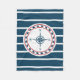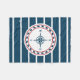 Design náutico com decoração em forma de bússola, em fundo listrado a azul e a branco