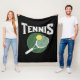 Design de texto "Tênis" com gradação de estilo retrorreflector com bolas de tênis amarelas e verdes e decoração de raquete
