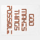 Este cobertor de velhas mostra as palavras "Deus Torna as Coisas Possíveis" em uma impressão única fonte de idade espacial, com letras negras, um contorno laranja neste estilo e tema baseado em dupla cor-de-fé. Este cobertor é feito de um veleiro de 100% de tecido mole e confortável veloz velo de poliéster com impressão de cores vibrantes de borda a borda e costura de borda dupla com uma máquina de trás colorido esbranquiçada e lavável.