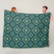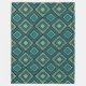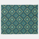 Este cobertor de velo grande tem um design de deco de arte de formas de diamante com linhas diagonais e diamantes coloridos em dois tons de lacre.