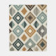 Esbranquiçado e minimalista, este padrão apresenta formas retrorreflectoras de diamante em castanhos sujos, amarelo mostarda e azuis mutados.