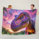 Este cobertor de velo tem um dinossauro nele.