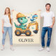 Este adorável design de cobertor personalizado apresenta um encantador dinossauro bebê dirigindo alegremente um veículo de construção em miniatura. Com a sua expressão lúdica e cores vibrantes, esta encantadora criação adiciona um toque de encanto a qualquer espaço, apelando a todos, especialmente crianças e bebês.