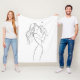 Soft and cozy fleece blanket featuring an elegant one-line drawing of a dog mom's loving embrace. Perfect for snuggling with your furry friend while watching TV or reading. The minimalist black and white design adds sophistication to any room.