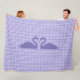 Lindo e elegante cobertor de flanela com dois cisnes e padrão ondulado azul lavanda.