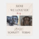 Celebrate the special bond between a dog mom and her two beloved pups. This warm, heartfelt design features two pet photos side by side beneath the message “Mom, We Love You”, accented with tiny pawprints for a sweet, emotional touch. Below the photos, the script word “love” rests above editable name fields, creating a meaningful keepsake that feels personal, thoughtful, and full of affection.
