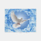 pomba branca sobre céu azul e nuvens