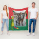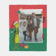 This blanket is perfectly balanced between Christmas cheer and holiday mischief! This fun, cozy custom photo blanket is framed with a bold red and green diagonal stripe pattern and features a large center space for your favorite family photo. Standing watch is the full-body grumpy Grinch in his Santa hat, pointing and looking suspicious! With cheerful presents and stockings decorating the frame, this blanket is the perfect whimsical gift for staying warm while embracing your inner curmudgeon!
