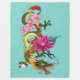 Dragão chinês estilo tradicional com flor de lótus, arte tribal e cerejeiras em flor
