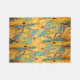 Bonito libélulas aladas turquesas sobre fundo dourado e amarelo.