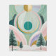 Esta trabalho de arte encantadora transporta-o para uma terra maravilhosa serena de inverno, banhada numa deliciosa paleta de azul pastel, rosa suave, roxo suave e verde sereno, todos acentuados com ouro brilhante. Três árvores charmosas se erguem graciosamente em meio a uma delicada queda de neve, seus ramos levemente deitados com as matizes sonoras. Acima, um sol estilizado, enfeitado com padrões intrincados, lança um brilho quente e caprichoso através do céu, completando esta paisagem mágica e imaginativa de neve. É uma peça que evoca sentimentos de paz, maravilha e sonhos nostálgicos de infância.