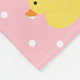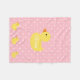 Este cobertor de bebê, aconchegante, apresenta um delicioso padrão de bolinhas brancas dançando sobre um fundo cor-de-rosa macio com uma ilustração animadora de um pato de borracha da mãe com três adoráveis patos de bebê. Insira o nome do seu filho para tornar este cobertor exclusivo deles.