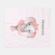 Um cobertor com uma ilustração adorável. Um elefante feminino cinza com um tutu cor-de-rosa e um balé dançante de flores, parado nos dedos das suas pernas.