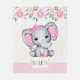 Um cobertor com uma ilustração de aquarela de elefante rosa e fofinha. Ela tem orelhas bonitinhas, cor-de-rosa e bolinhas branca e arco bonito de fita rosa sobre a cabeça. O topo é decorado com um belo buquê de rosa. A borda inferior é o padrão de rosas claro com bolinhas coloridas creme. Um quadro retangular com uma borda falsa de folha de ouro com o seu nome dentro.
