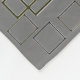 Numerosos retângulos sobrepostos de vários tamanhos são organizados em um padrão de abstrato sobre um fundo cinza. Alguns retângulos parecem ser cores sólidas de azeitona ou preto, enquanto outros são apenas contornos, criando um sentido de profundidade e complexidade.