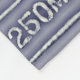 Foto gráfica, das palavras "250 mm", mostrada em branco, contra um roxo, branco, azul escuro e preto, o fundo é um elemento de medida, no Sistema Métrico.