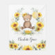 Este adorável cobertor apresenta um lindo ursinho de pelúcia segurando um belo balão amarelo adorável, enfeitado com a coroa verde de girassol